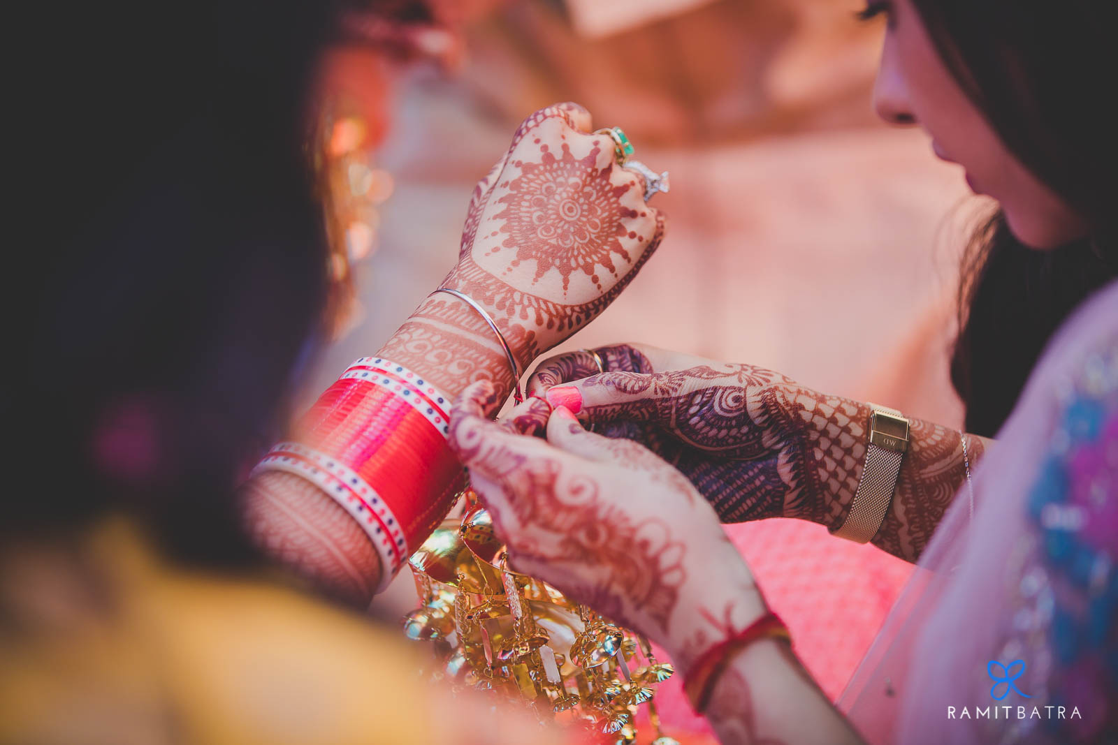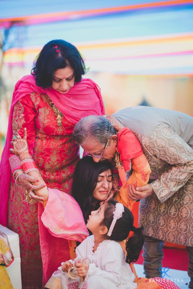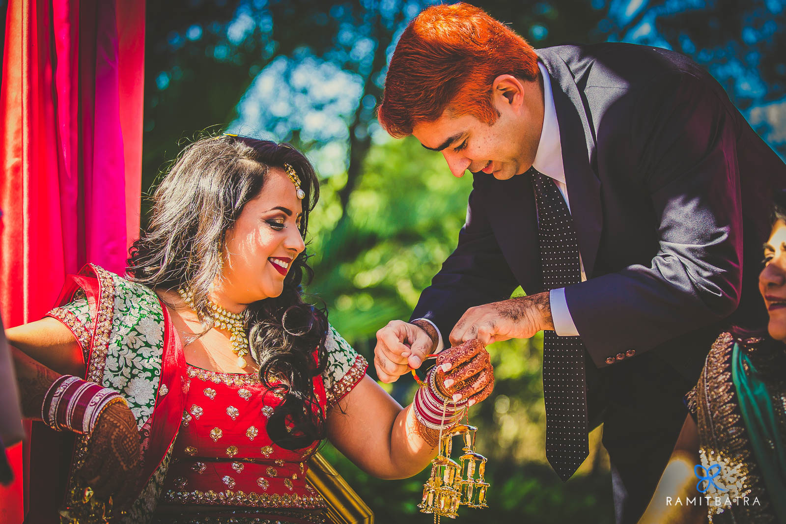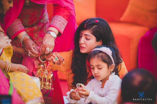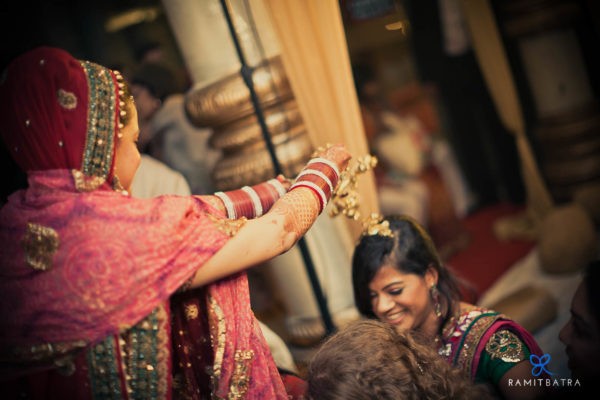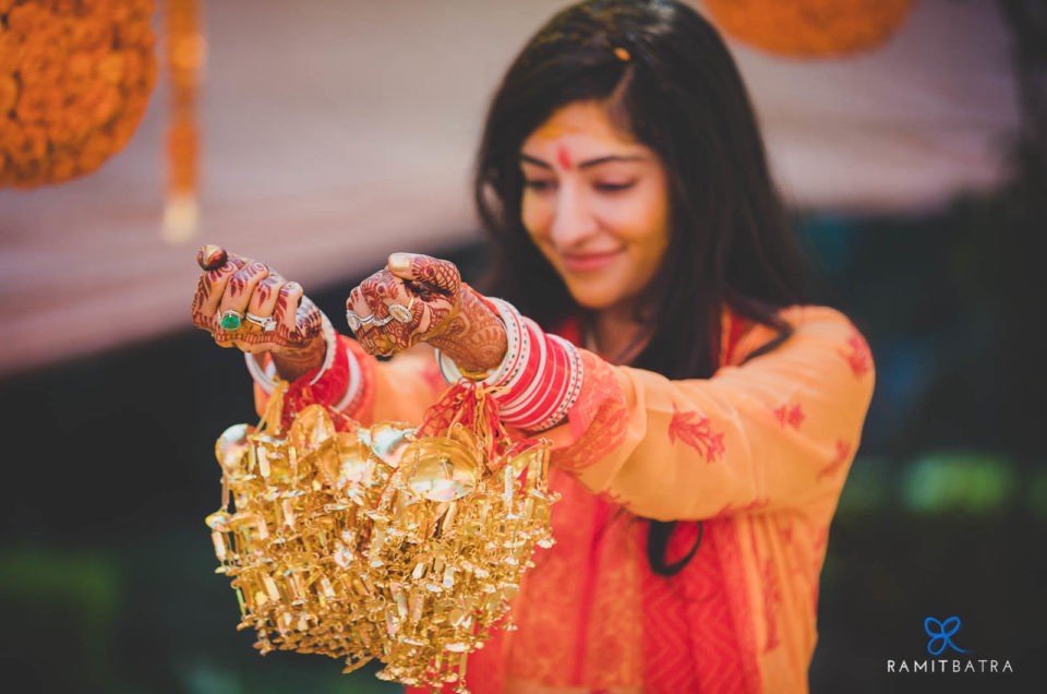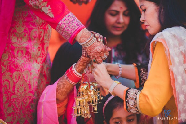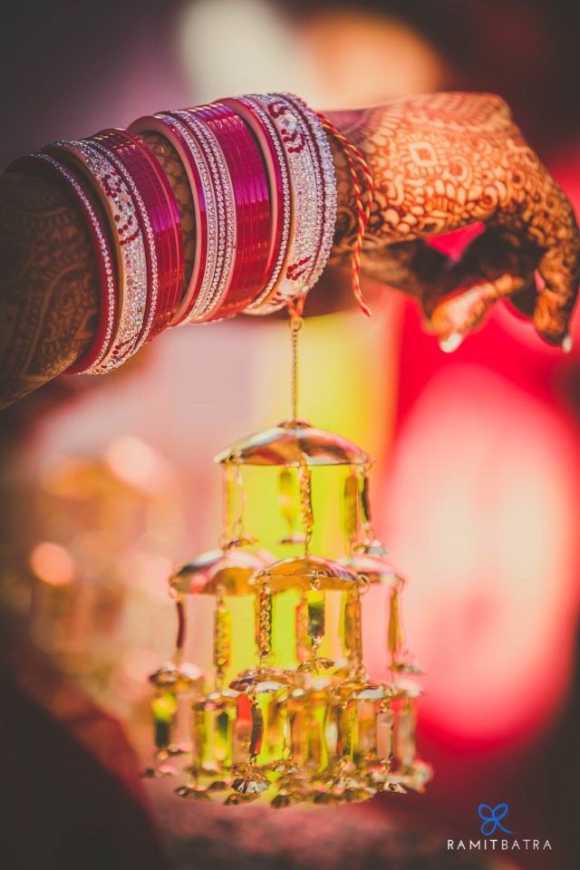 Weddings often focus on the bride and groom—their outfits, accessories, and preparations—but they’re also a celebration of two families coming together. Beyond the main events like the haldi, mehendi, sangeet, and feras, there are smaller, yet equally meaningful, rituals that bring out the fun and emotional essence of an Indian wedding. One such ceremony in Punjabi weddings is the Chooda and Kaleerey. The chooda, a set of 21 red and white bangles gifted by the bride’s maternal family, is worn for 40 days to 1.5 years to bring good luck. Traditionally, the bride keeps her eyes closed while the chooda is tied and it remains covered until the wedding. The kaleerey—umbrella-shaped metal hangings—are tied to the chooda by the bride’s sisters and friends as a gesture of love, luck, and remembrance.