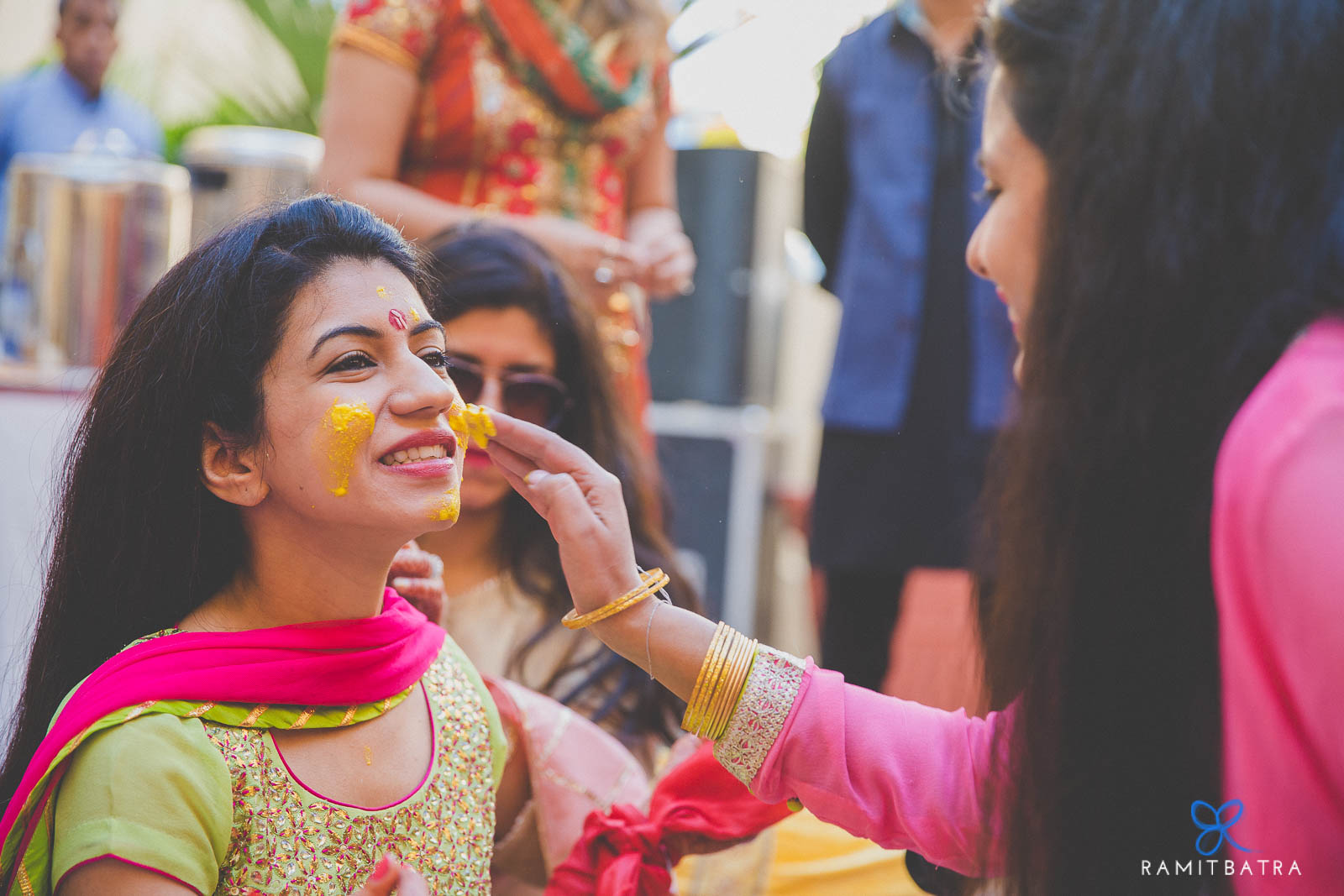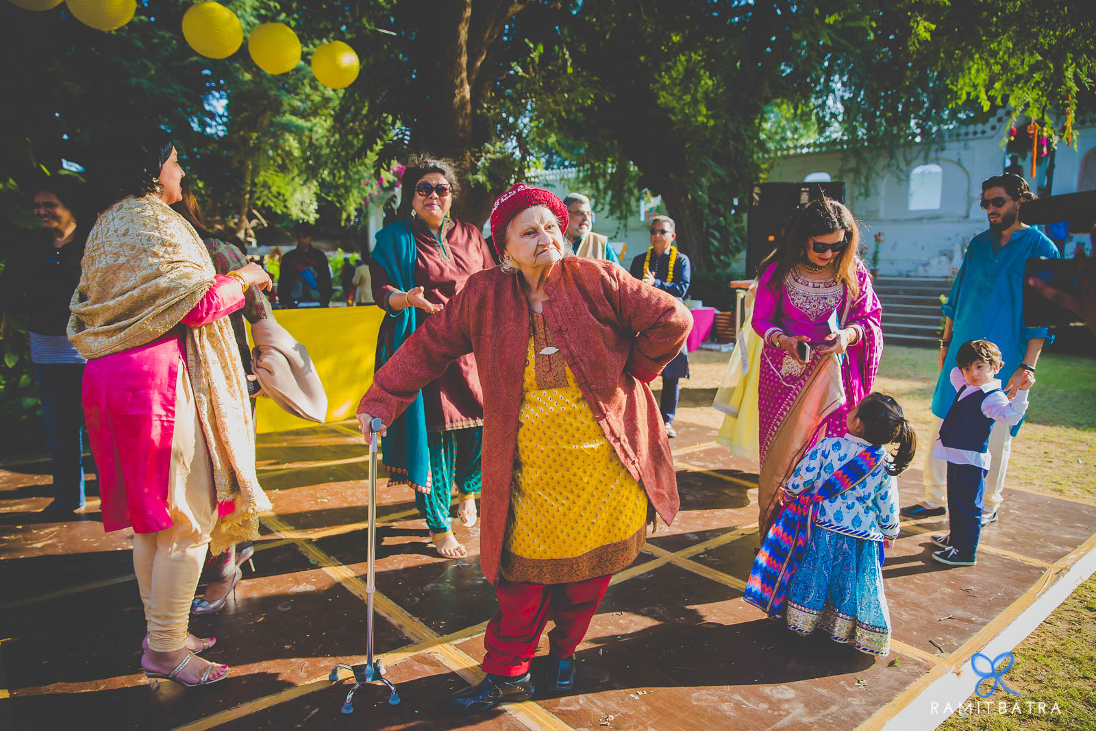 Mehendi Brunch – Samode Bagh The festivities began with a sunlit brunch-mehendi at the lush Samode Bagh lawns. Crisp winter sunshine, sangria & beer, live bangle-making, laughter, and impromptu dance performances set the tone for a vibrant start.