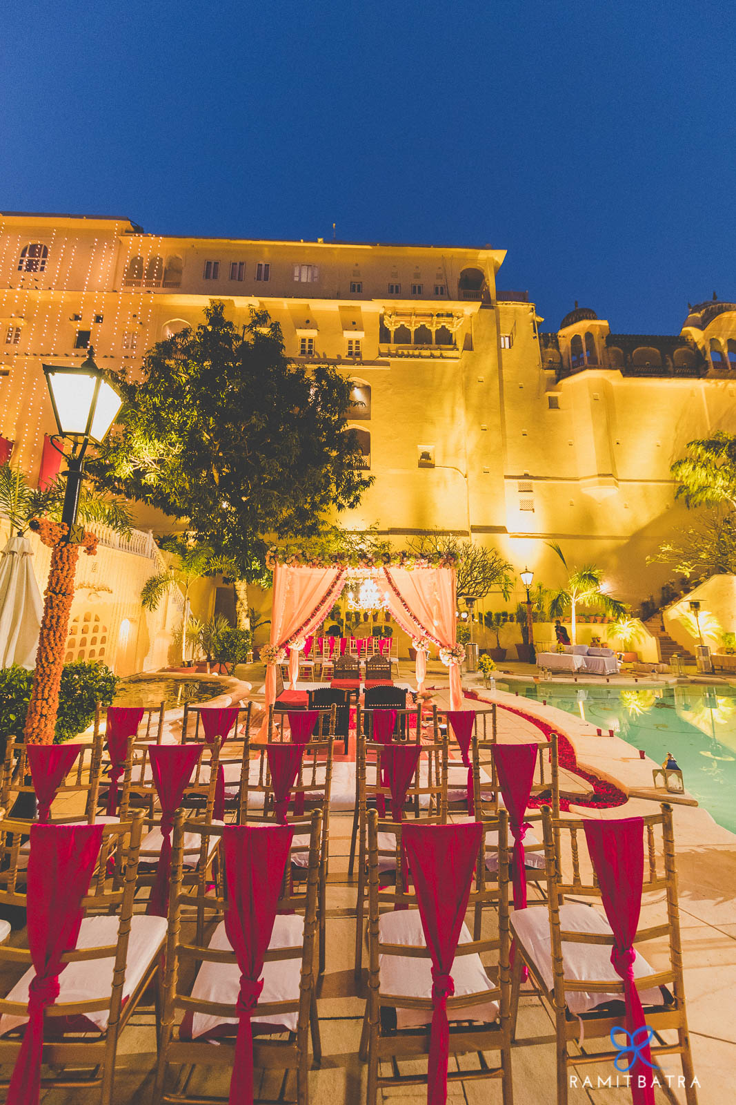 The wedding rituals took place under a beautifully adorned mandap by the poolside. From heartfelt speeches to a joyous reception, and finally a vintage car bidai, Ashima & Karan’s wedding was the perfect blend of tradition, elegance, and celebration.