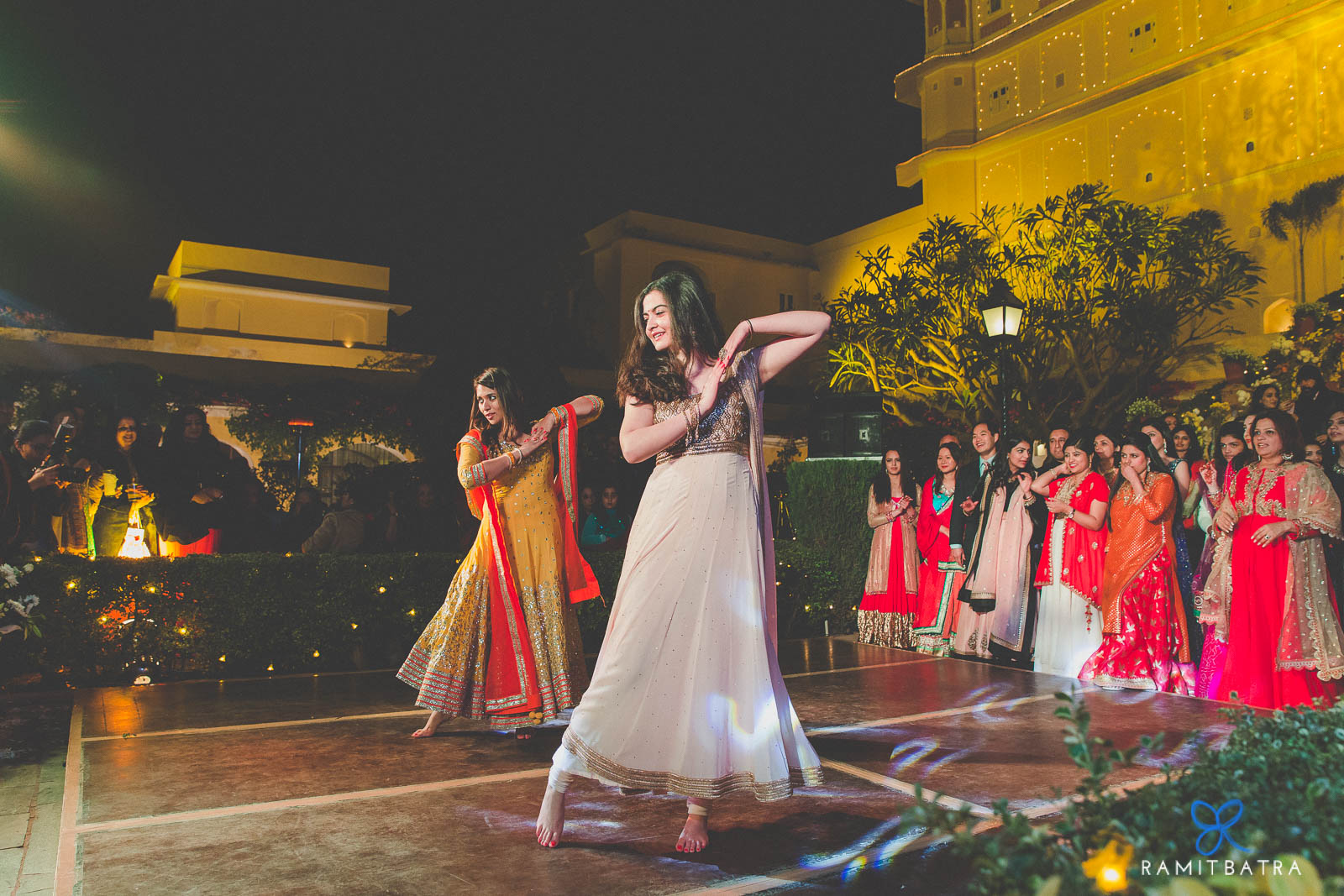 As the sun set, guests gathered at the grand Mughal Gardens facing the palace entrance. Bonfires, heartfelt dance performances, and a flashback medley of Ashima & Karan’s journey together created an evening full of nostalgia and joy. The celebrations carried on into a lively poolside after-party that lasted till dawn.