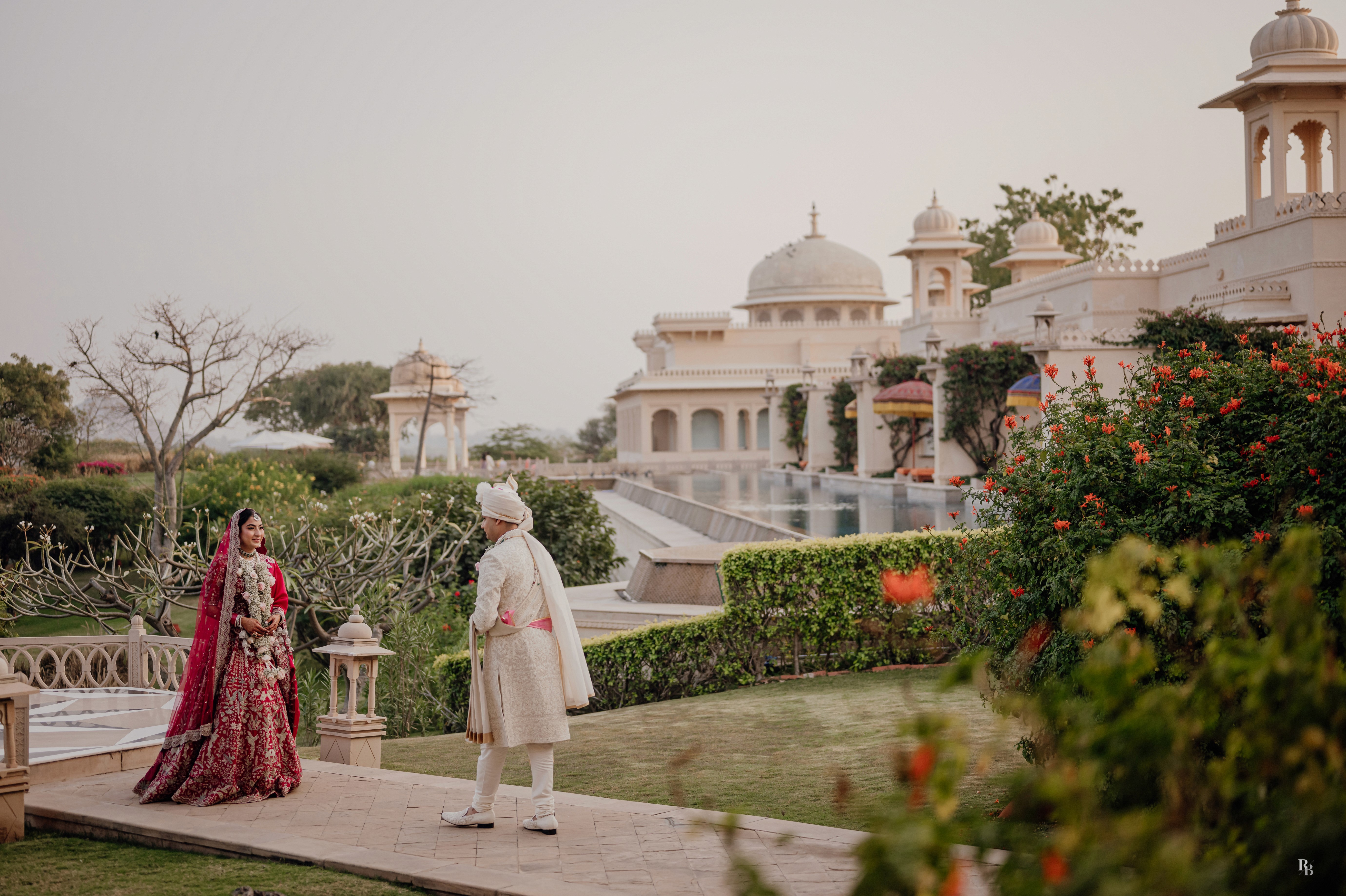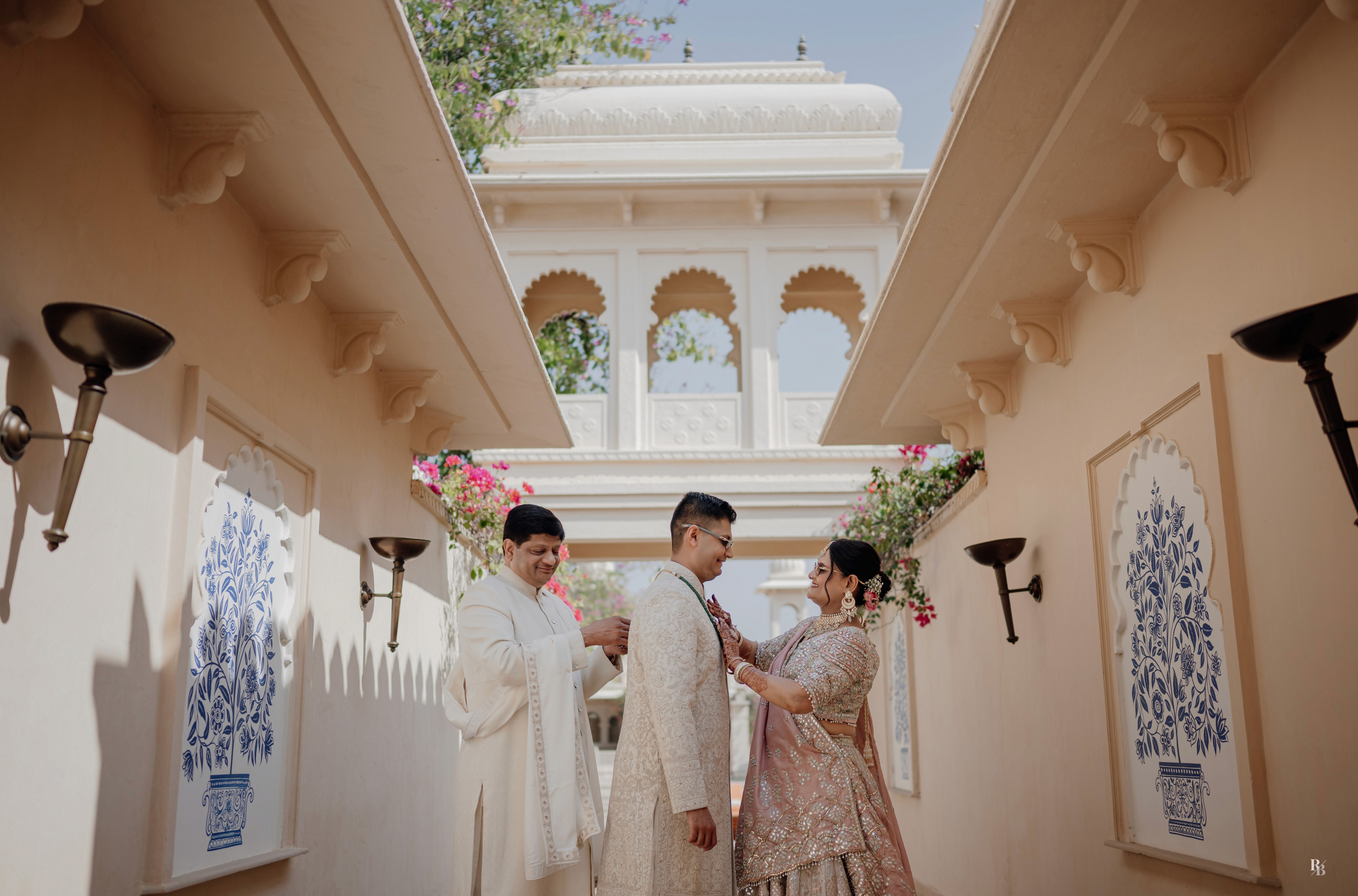 Every frame, every laugh, every glance spoke of a love that was not only celebrated but also deeply cherished. With golden courtyards, tranquil lakes, and centuries of heritage echoing in the background, their wedding felt like stepping into a living fairytale.